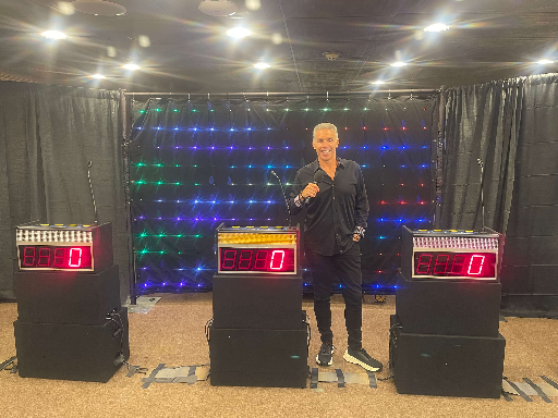 Perfect for groups of 15 to 400 participants, this 60 to 90-minute event features podiums, backlit scoreboards, individual microphones, and lockout buzzers for that authentic game show feel. Our professional emcee keeps the excitement going with verbal and audio questions, interactive contests, and team-based challenges that get everyone engaged.